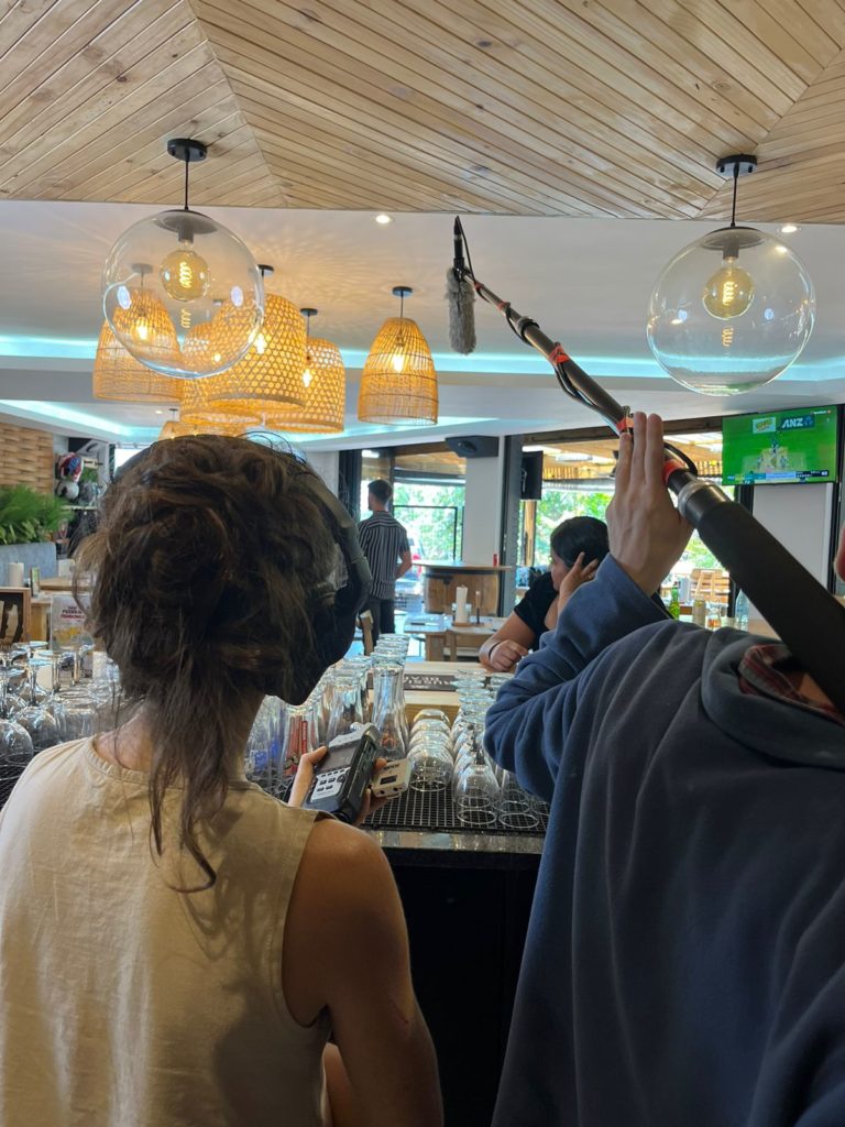 I had access to a Zoom H4 Recorder, a Rode Go lapel, a Saramonic lapel, and (I think) an ME66 rifle mic. I had to hire a boom pole and stand. My thinking was that we’d probably have two people lav’d up with one boom ready to go where needed. We fed two mics into the H4 and one into the camera itself to have an audio track to sync to in post (essential step!).