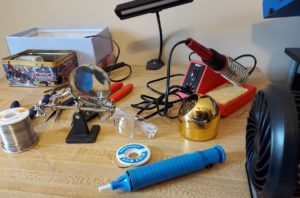 With tiny components, fingers are often too clumsy or too large, that is why I have tweezers and needle nose pliers in my kit. I also keep cotton swabs and isopropyl alcohol to clean up my finished board. Multimeters are useful to double-check connections within the circuit. If there are any accidental shorts or missed joints, the multimeter should find them.