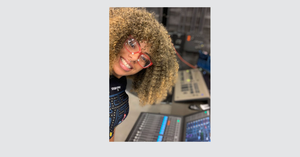 Alesia Hendley’s introduction to audio started with a traditional path. She learned about sound at her dad’s church in Connecticut and decided to study audio at a trade school in Texas after her family moved there. Even though the program was focused on music production, her career focus at the time was still live sound.