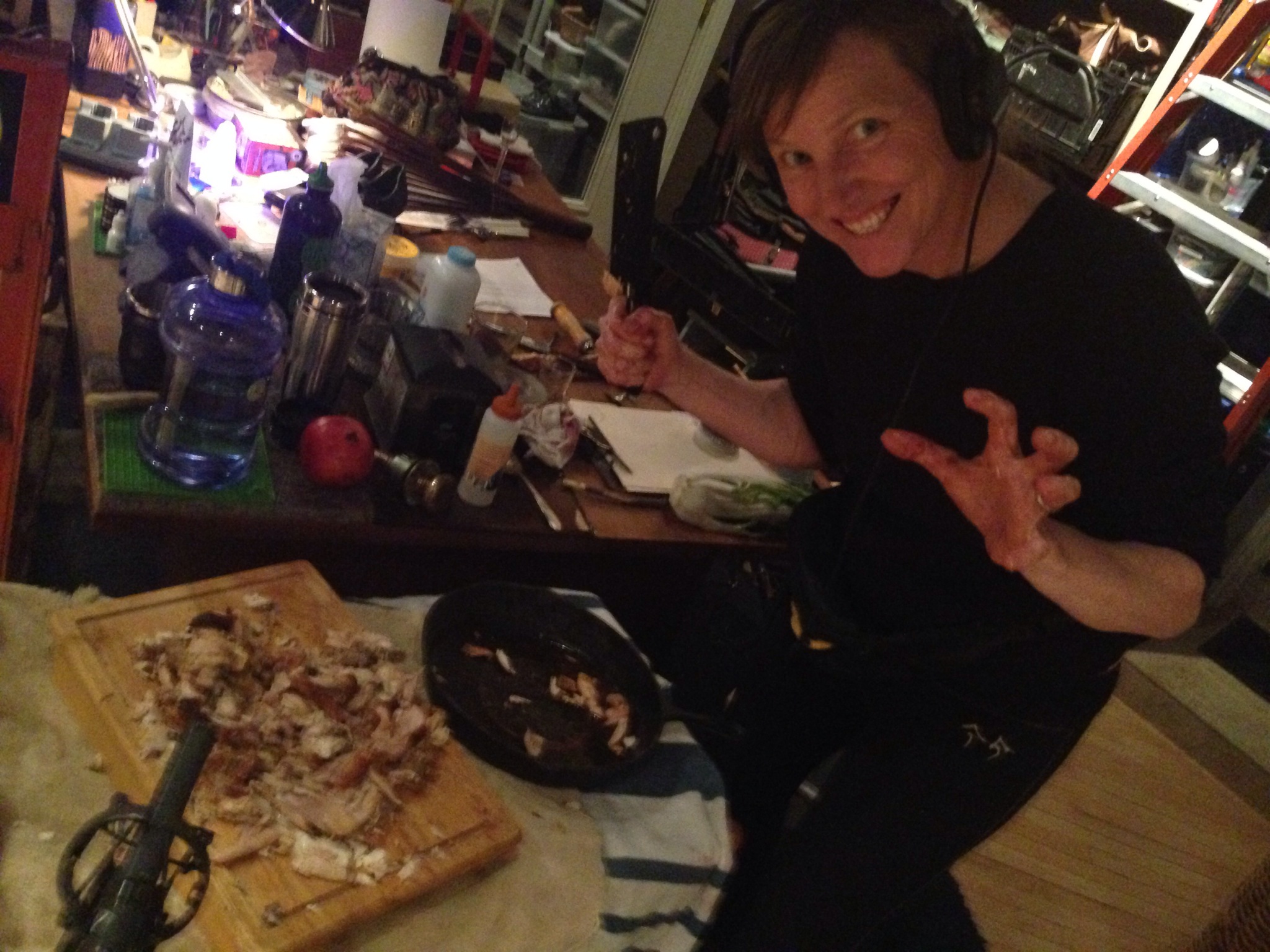I guess studio clean-up, but even that is very satisfying to me. After Rosemary’s Baby I cleaned up meticulously, as I do after every session, but I was finding chicken bits for weeks afterward in the strangest places as I had hacked so hard it had splattered everywhere.