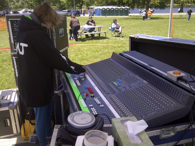 Working for production companies is obviously very different since you don’t have a system to walk into and sometimes the builds are very big. Usually, we’ll show up, dump the trucks, more often than not wait for the staging company to finish building the stage. From there we organize which cases go where and layout power, audio, build towers if needed, and fly PA. I am usually patch, so once the PA is in the air I get to work laying out everything that goes on the stage – placing subsnakes, coming up with a patch plan for all of the acts, micing everything, having a plan for changeovers, making sure the A1s know the input list. Then we do the show, take everything down, get it all back in the cases, and get the cases back in the trucks.