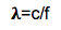 Wavelength (in feet or meters) = speed of sound (feet or meters) / frequency (Hertz) **must use same units for wavelength and speed of sound i.e. meters and meters per second**