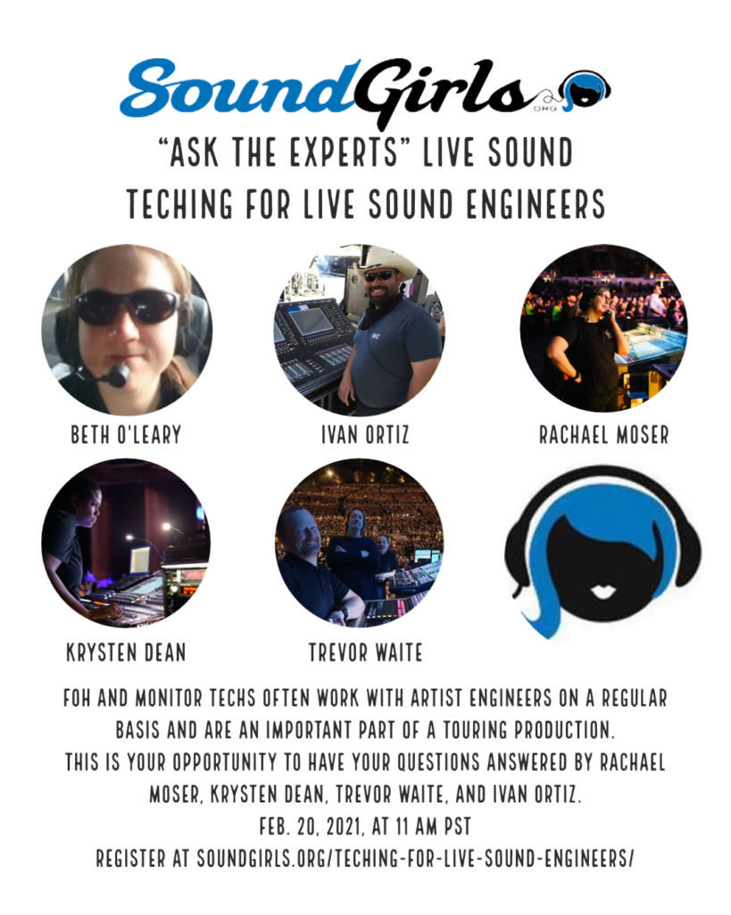 SoundGirls and Women In Vinyl Virtual Conference – Registration is Open Support Access. Build Community. Empower the Next Generation. Asian and Pacific Islander Grants Available From Mix to Master: Live Feedback with Top Engineers Greg McVeigh’s Just 100 Questions — Special Discount for SoundGirls Members